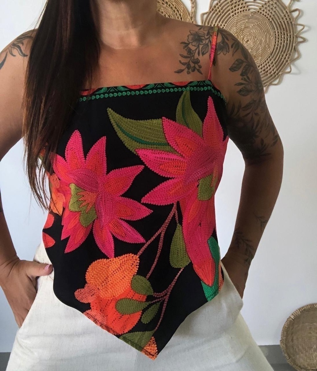 Blusa lenço com alças reguláveis e amarração nas costas
