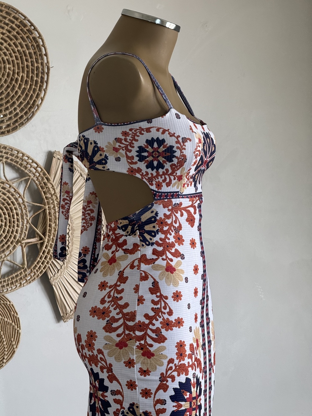 Confeccionado em malha canelada, um lindo recorte nas laterais e amarração nas costas